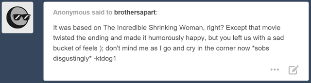 So so close, but nope. It’s not based on that one 🙂 The movie it’s based on has a far sadder ending, in my opinion. It’s based on a movie that stressed me out so much as a child.
