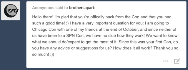 I did get lucky enough to meet up with one girl that knew me from tumblr and that was very exciting! Though my hands were shaking so bad from literally just having walked out of the photo op with Jared and Jensen so she had to take the picture of us.