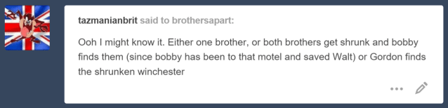 I’ve thought about how it would go if Gordon found the downsized brother first… and it never seems to end well. *shudders*