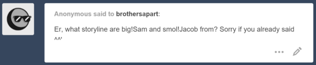 We can’t say toooo much without giving it all away, but it actually isn’t a big Sam! That is our beloved four inch tall Sammy, and his extra downsized Jacob! Or, as Dean calls him, half-pint.