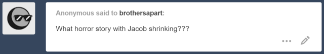 There have been sneak peeks of a horror story we are in the process of writing. It will take place in the Brothers Found AU (Where Jacob discovers Sam before Dean), and will revolve around a case where Jacob shrinks down to about an inch and a half. It will be the third story in that series.