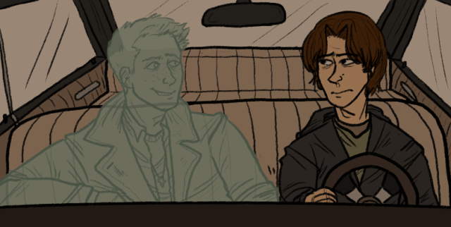 au where dean died hunting by himself and sam inherits the impala except it’s the anchor to dean’s ghost and sam can’t make himself burn the thing down so he’s stuck with his jerk ghost of a brother
