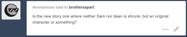 On June 18, 2016December 13, 2018 By nightmares06In Uncategorized Nope, this time we didn’t shrink an OC! Think you know the mystery story? Send in a guess! Share this: Click to share on X (Opens in new window) X Click to share on Facebook (Opens in new window) Facebook Like Loading...