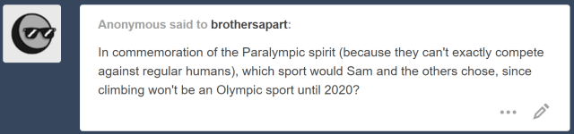 Considering Sam’s strength has been enhanced by his size, powerlifting isn’t out of the question. He’s relatively stronger than any human on the same scale, so he could flex his muscles for once and awe the crowd (and Dean).