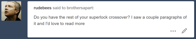 Since most of the stories posted here are Supernatural stand alones, if you want me to send you a message when BC starts posting, send me a pm on my main account, @nightmares06, and I’ll mark you down for it. I’m just as excited as you are!