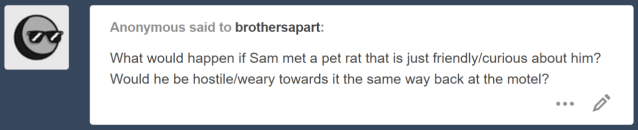 And make sure Dean doesn’t freak out at the furry rat in their room XD