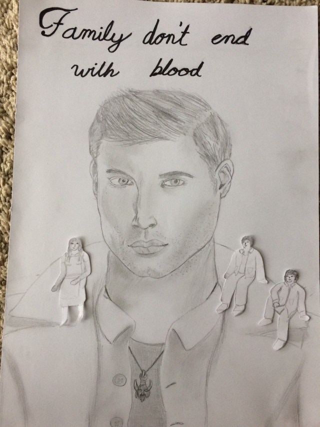 Sorry it looks weird, I’m giving just the picture of dean to someone so I cut out sam’s family. Also sry it’s only half realistic, I was kinda just rushing to get it done😅