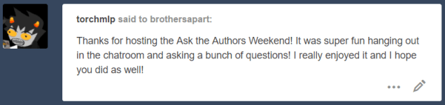 Since the chatroom took off so well, we’ll be leaving it open for people to visit, whether we’re around or not, and any newcomers can feel free to join the BA discord chat!