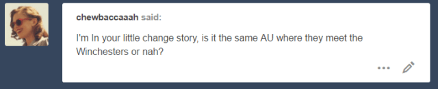 I hadn’t really thought that far ahead! I bet the Winchesters (any set, if we consider the @brothersapart multiverse) would find this just as crazy as Bowman and Jacob do. Jacob would have even more mother henning to worry about while he’s so little, regardless of how big the Winchesters are!