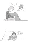 “I wish you were here,” Sam whispers, and this time he isn’t speaking to the dinosaur. He angles it so its face bobs once, and for a moment the eyes glint green back at him. “I feel… something hurts– like a punch!– whenever dad says your name.” Sam blinks back tears. “Like you should be here. I don’t know you, but… I feel like I’d be a finished puzzle!”