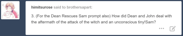 Bobby held in a sigh. He couldn’t say he was surprised, but he was disappointed. He’d enjoyed talking to the littles the last time he’d run into them, but clearly this one wouldn’t give him that chance. He’d already been hurt by humans.