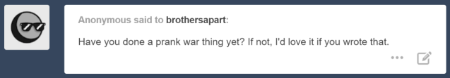 A prank war hasn’t happened yet… but it is coming. Oh, it will come.
