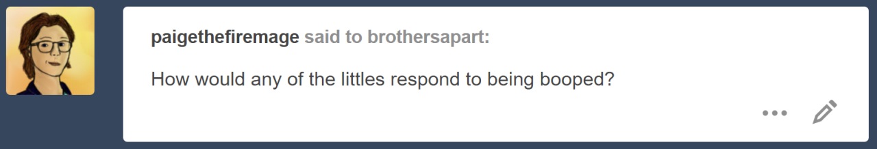 Comment: I feel REALLY bad for poor Bree in Brothers Consulted. In a way, aside from Mark and Anita who had to deal with being under Euan’s control for years, Bree had to undergo being taken away from her family (at least Mallory most likely survived this au), being forced to become a pet to a family of criminals with all sans one treating her like a doll, THEN getting shipped away to London and away from the only stability in her life (aka Beth) to get marked with a brand, and had she not gotten rescued, who knows what would’ve happened to her. And, unlike the others, she’s kind of alone in the whole situation. Mikael, Kara and Christian have each other. Anita and Mark got reunited. Even Dean and Sam were lucky enough to stick together through their whole ordeal on making it to London. Bree’s got nobody and since her family is back in the US, she’ll have to make the biggest adjustment of all since she has to probably learn how to borrow all over again.