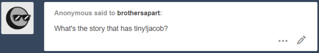 There’s multiple tiny!Jacob’s, but if you mean the story with the extra smol Jacob, it’s our horror story! We have excerpts posting for it now, and it’ll be appearing in the poll before long. Check out all the past posts about it: