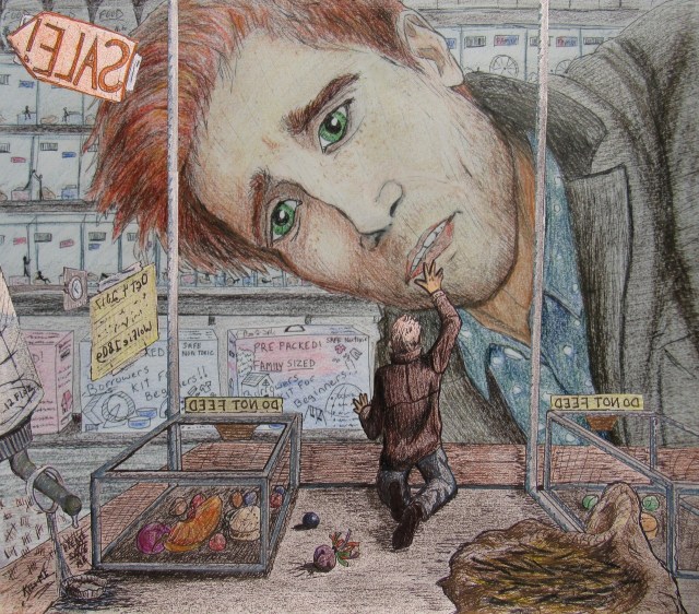 His gaze shifted again to regard the other cages and the patrons perusing them. The people of both sizes that he saw appeared entirely different than himself and Dean. Most of the borrowers were dressed in bright outfits, practically bouncing at the front of their cages to catch someone’s eye. The humans were all enamored of them, a child further down prodding his fingers against the glass to tease one.