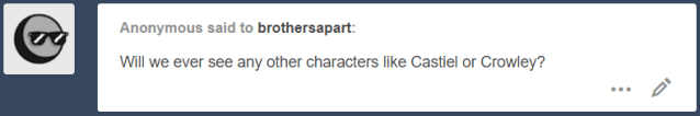 Considering the amount of asks we get about Castiel, I’m going to point you towards the FAQ we have.