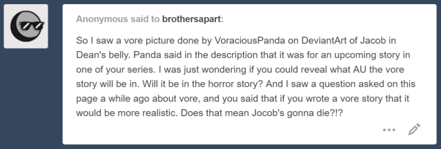 Also, you prompted a very depressing idea for one of the AUs, since I had sads on my mind this week while listening to Lindsey Stirling’s Shatter Me, so people can blame you when I break their hearts 😛