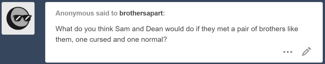 I’m sorry if this has been answered before, but what would have happened if John Winchester found both of his boys hit by the curse at the time that it happened? Would he have stayed with them or just dropped them off at Bobby’s?