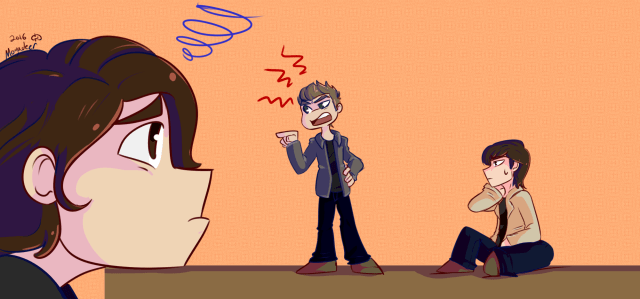 Fascinated, Dean lifted Jacob up into the air, his intent green eyes taking in every one of Jacob’s few inches. The kid was tiny, not even stretching all the way from one side of Dean’s palm to the other. He was wearing a hoodie, slightly too large for his frame, along with jeans. Dean curiously pinched one of the tiny hands between two fingers, feeling the soft skin and precise movements of little fingers.