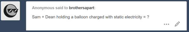 Before they could drop back down into the pocket to get out of the way, Dean got a finger to tap against both of their heads, ruffling the messy bedheads of the smaller pair and generally messing them up more. Then, Dean patted his pocket, and that was the last straw that sent Sam tumbling down, off balance.