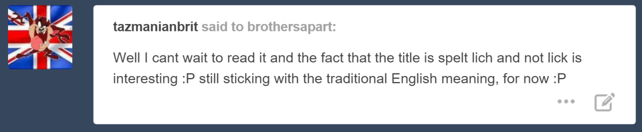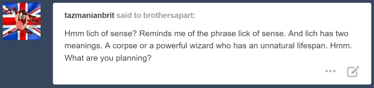 I’m thinking if it gets written in its entirety, it’ll be added into the supply of AU ideas that have been written out and I’ll poll for which of these stories people want posted once A Lich of Sense is finished! (Some AU’s contain spoilers for that story)