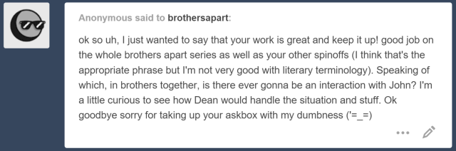 “Just kick it!” came Dean’s not-so-helpful advice. “You’ve got boots, put ‘em to use!”