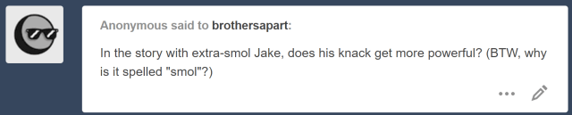 For the second part, smol is the evolution of small that has occured over the internet, and you can find an in-depth explanation of the word here! I was fascinated when I found that post.