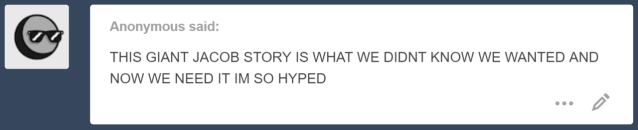 Rumsfeld would totally demand scritches and love from Jacob. Even if he can only use one finger to do it (and be very careful!), the pup has declared Jacob his scritcher.