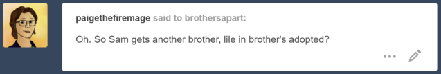 He does! And for a very smol Sam, it’s a very unexpected brother!