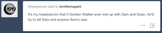 Sam waved Dean away, unable to meet the magnified worry in the green eyes he was suspended in front of. “I’m fine, just a little shaken.” He rubbed his head again. “Wasn’t really expecting to go for a ride just trying to wake you up.”