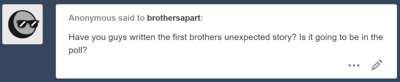 After these three stories finish, we will have a huge poll to blast off the next round of stories! So stay tuned :3