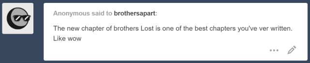 Truthfully… if there’s an update for a fic I read when I wake up in the morning, I usually can’t resist doing the same. I just need to read it as fast as possible, and it brightens up the morning. I’m glad our stories do the same for you!