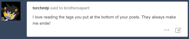 I love when one of our posts gets comments or tags! The only problem is remembering to include those when we reblog. I am a ditz when it comes to this stuff some days.
