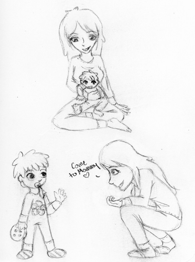 We babby Oscar and his doting Mommy. X3 They’re only rough sketches but I had to share, he’s just too cute. He and his mom both belong to @neonthebright, and Oscar can often be found jumping into certain @brothersapart stories! I only make the fanart and yell at them about things. XD (It’s my job as a beta editor.)