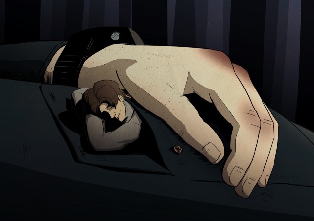 Sam smiled. “ ‘Night Dean,” he called up as well, settling comfortably under the shadow of the huge hand. Dean’s thumb rubbed gently up his side once before going slack.
