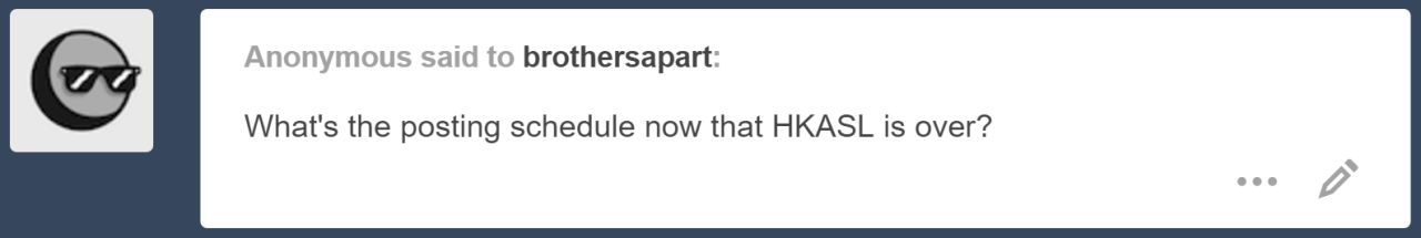 A few of the asks I’m sure I answered back when we screenshotted them, but they could use updated answers now that some time has passed.