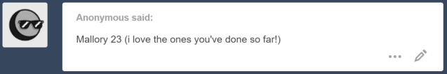 She did her best to ignore him as he came over to her, one hand gently stroking down her back. He gave her neck a kiss, and she tried to squirm away, refusing to let him win his way back so easily.