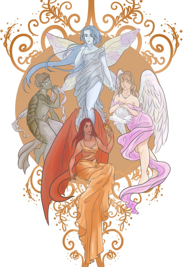 The water sprites of Aeternum live in the lush jungles of that realm, tending the plants to pass the endless time. The great plains and deserts of the realm surround their home, where the air sprites frolic in the skies. Past the plains lies the great volcano that is home to the fire sprites. Earth sprites, of course, live below all the different lands, tunneling in the warm embrace of the earth.